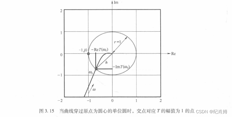 在奈奎斯特图中,曲线上的点离原点的距离为幅值信息,以原点为圆心绘制单位圆,与单位圆相交的点即为穿越角频率所对应的点,注意其数值并非是单位角频率的值,而是此频率下输出的特性参数,要得到此频率需要自行查找