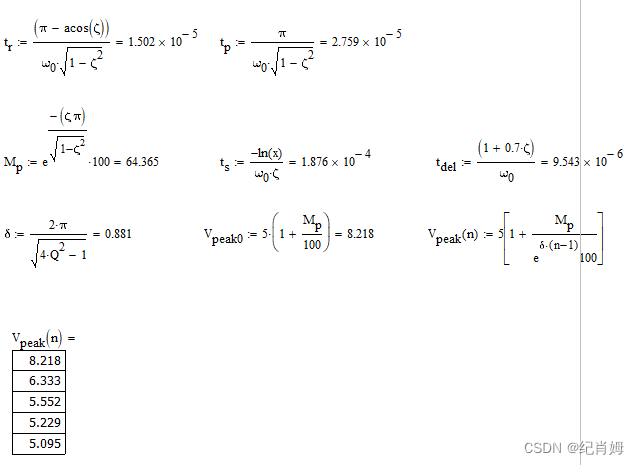 值得注意的是,这些数值仅针对欠阻尼系统,而对于过阻尼系统而言,其上升时间与欠阻尼定义有别,且不存在峰值时间、超调、对数衰减等参数