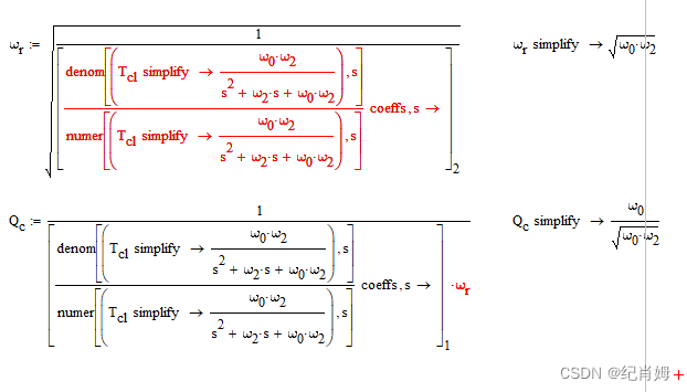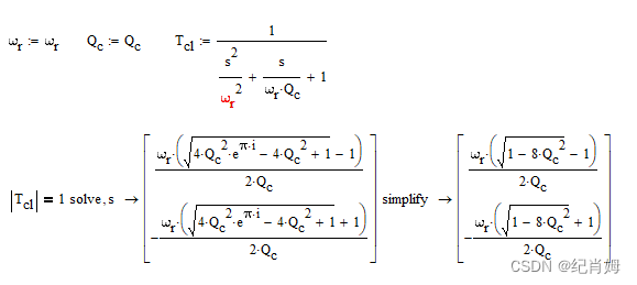 老办法计算系统的闭环 Q 值以及谐振频率,谐振频率此处用 wr 表示,此式中 w0 为原点极点值