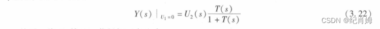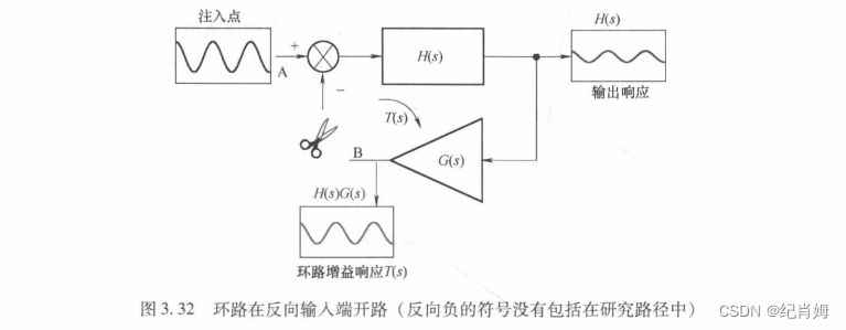 当灵敏度函数再次乘以前向反馈通路后,获得误差信号从输入端进入系统的响应,误差信号经过一次前向通道后等于从输出端进入的信号,两者都可以通过叠加原理计算