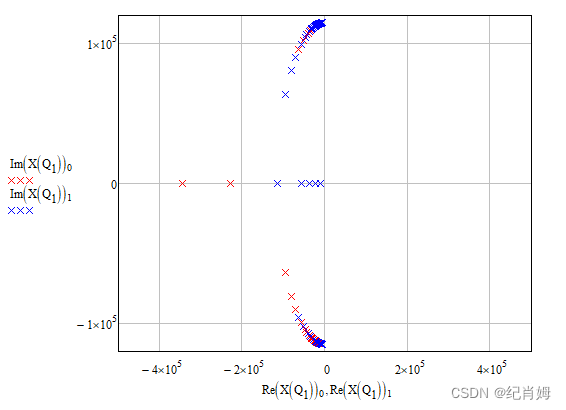 对于所有正固有频率的根轨迹图,Q 值在大于 0 的范围内变化,都应当符合上两张图的形状,但是固有频率和 Q 值在数学软件中也可以是负数,固有频率和 Q 值任何一个变量为负数时,根轨迹图的方向将被取反,但在实际情况下这两个值都是非负的