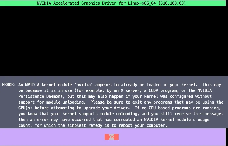 Ubuntu 系统集成的显卡驱动程序是 nouveau ,它是第三方为 NVIDIA 开发的开源驱动,我们需要先将其屏蔽再安装 NVIDIA 官方驱动,否则直接安全驱动的话往往会报以下错误:ERROR: The Nouveau kernel driver is currently in use by your system. This driver is incompatible with the NVIDIA driver