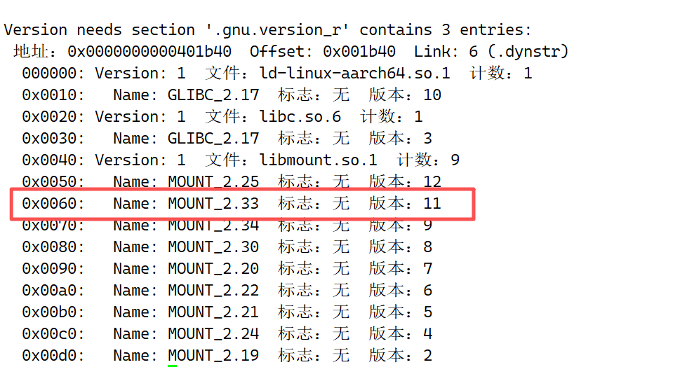 2、# strings /lib/aarch64-linux-gnu/libmount.so.1 | grep MOUNT_2.33