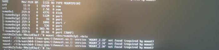 【问题描述】一台银河麒麟V10桌面系统,安装某软件之后,部分目录挂载失败,无法正常进入图形界面,报错如下:/lib/aarch64-linux-gnu/libmount.so.1: version "MOUNT_2.33" not found (required by mount)