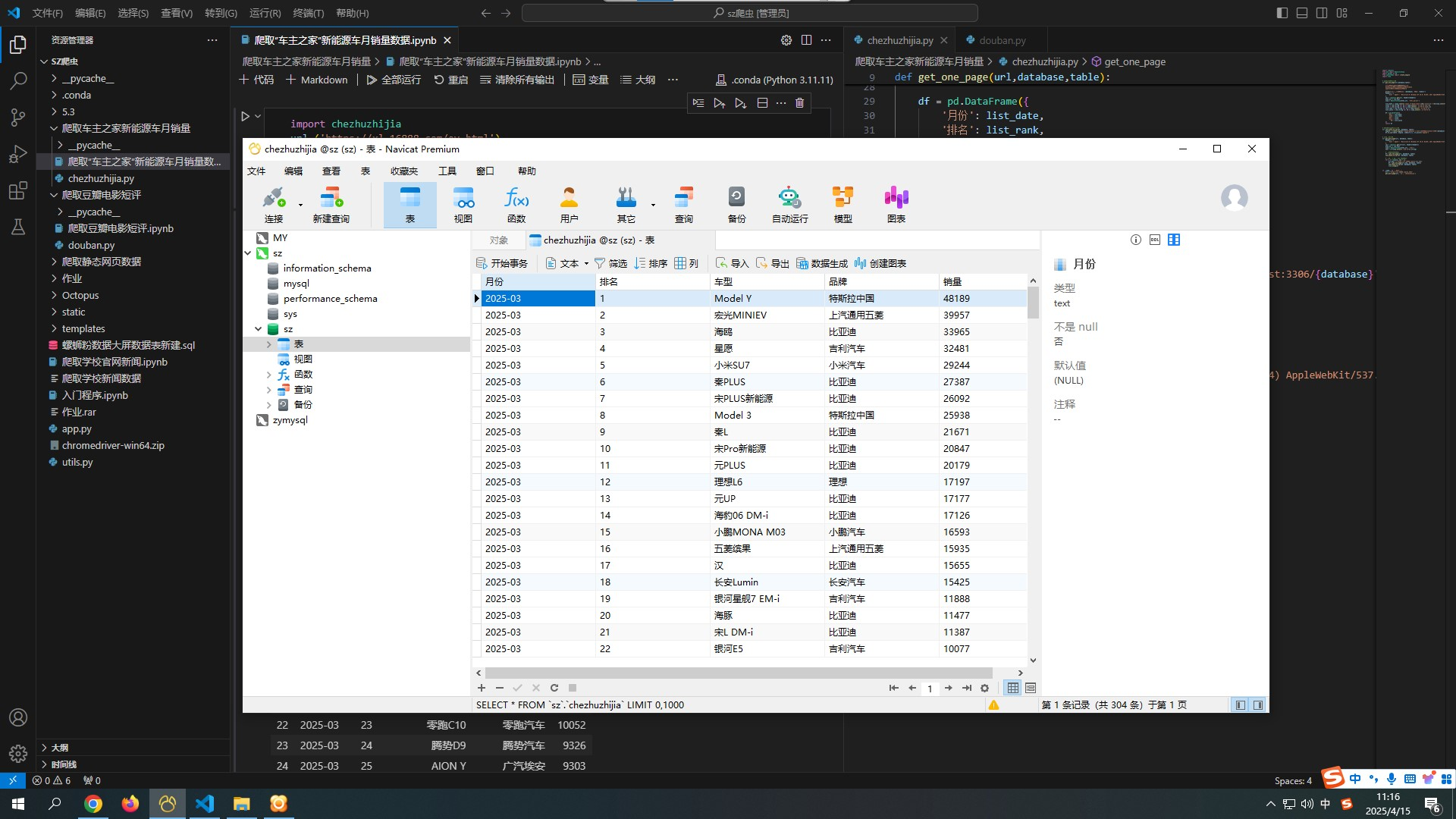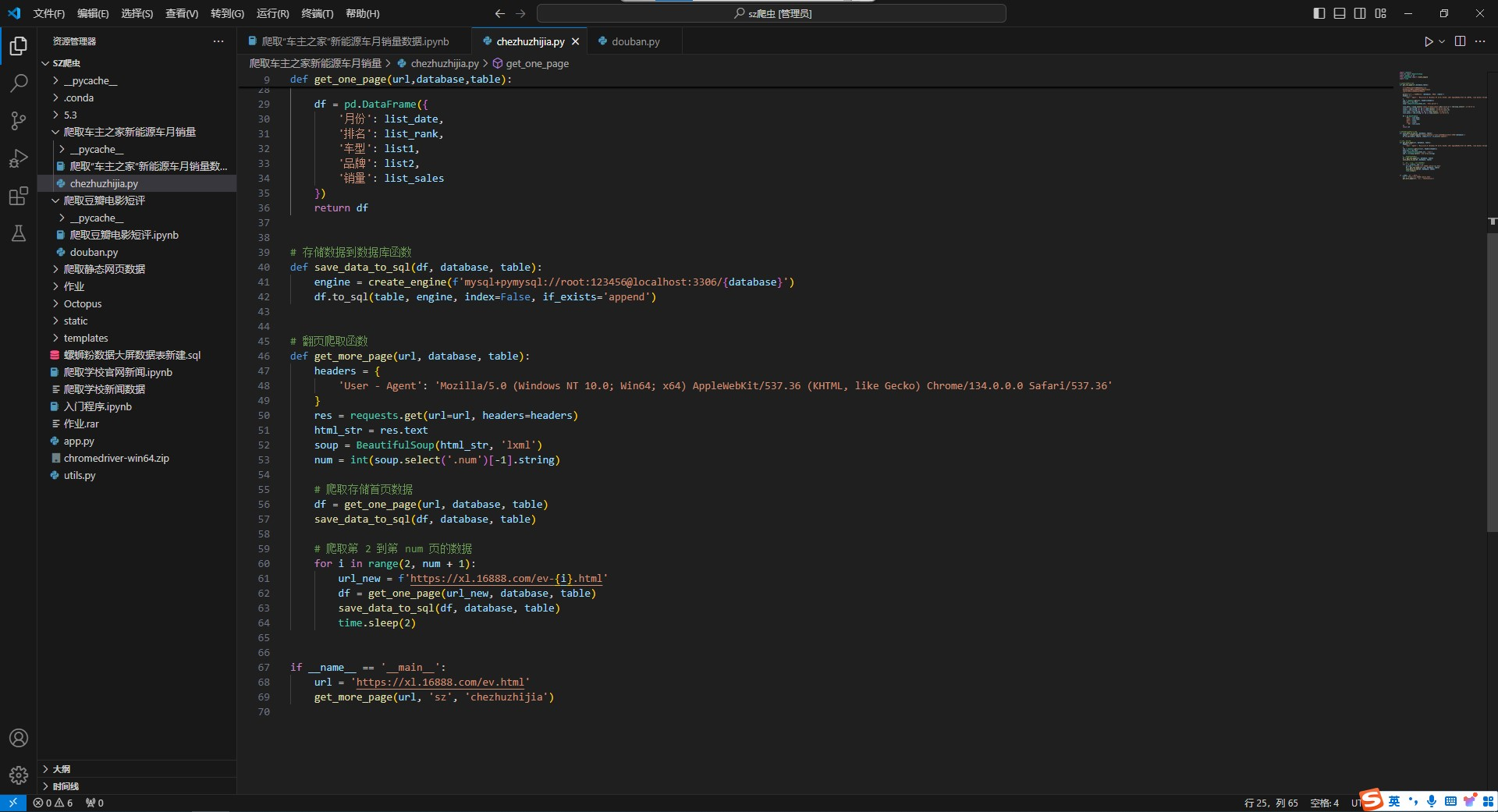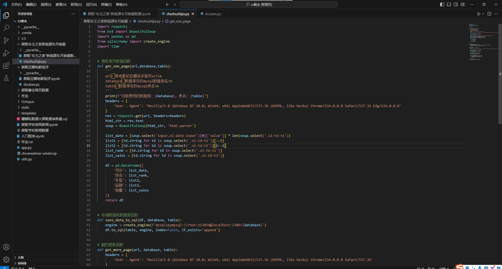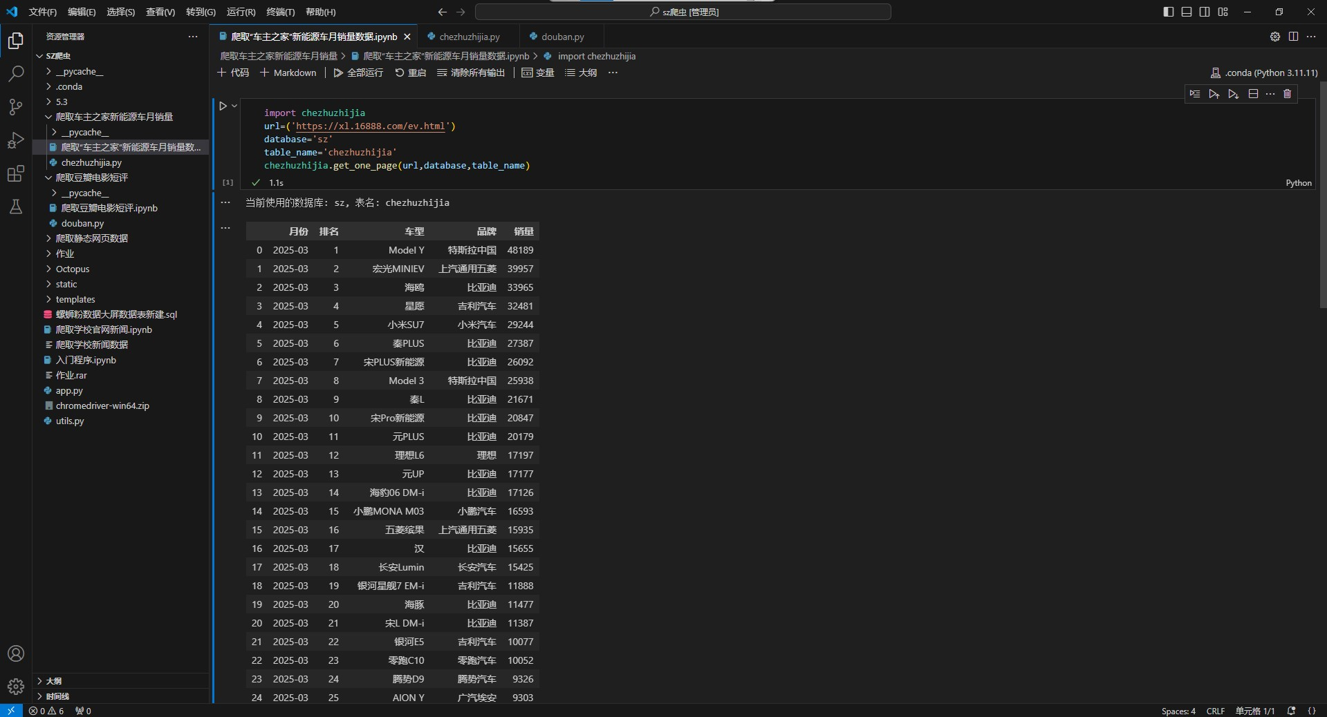 这个爬虫脚本用于抓取新能源汽车销量数据,并将数据存储到 MySQL 数据库中。