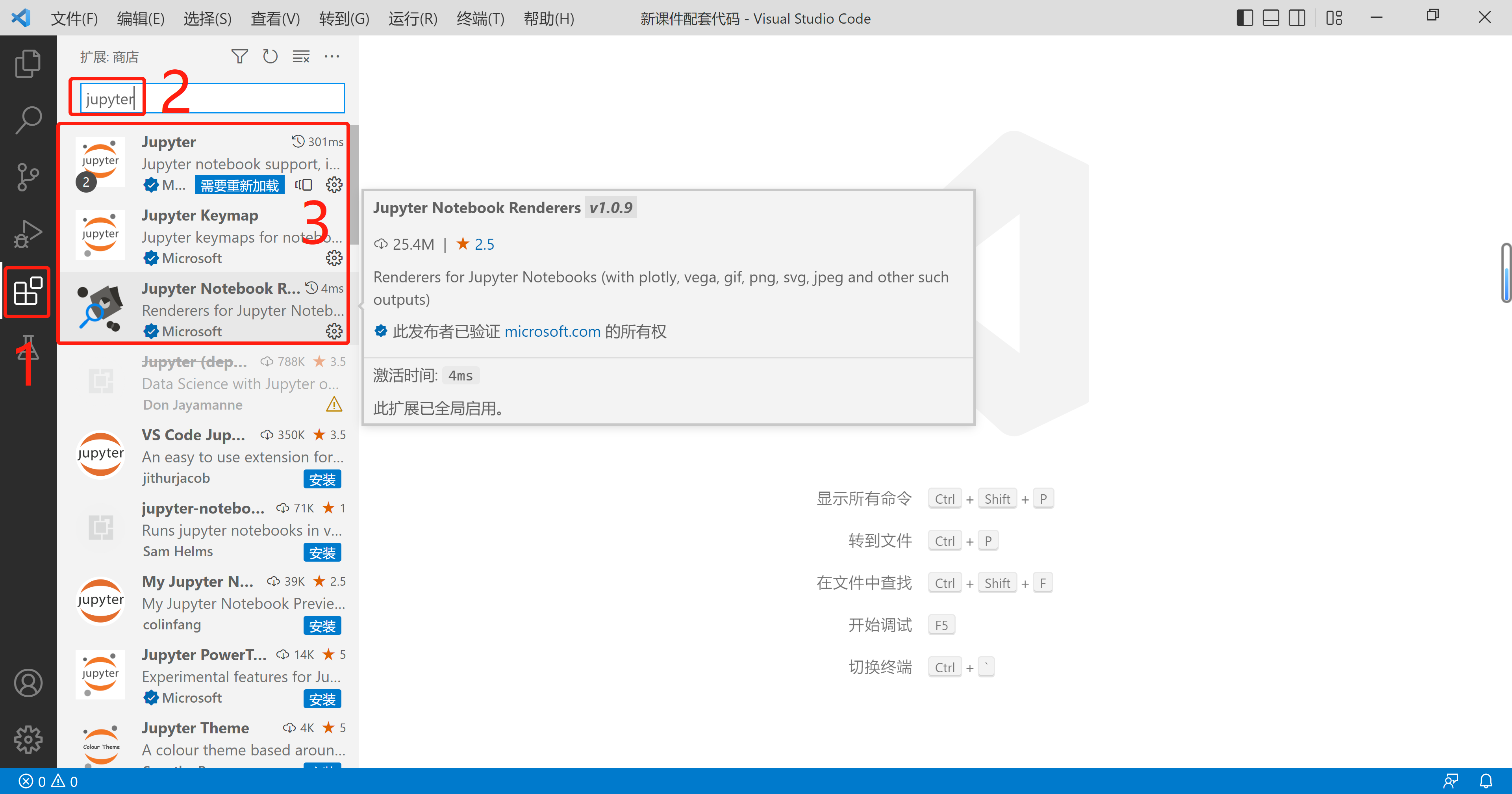 vscode可以安装各种插件来拓展它的功能,安装jupyter相关的插件可以让我们在vscode中运行ipynb类型的文件。
