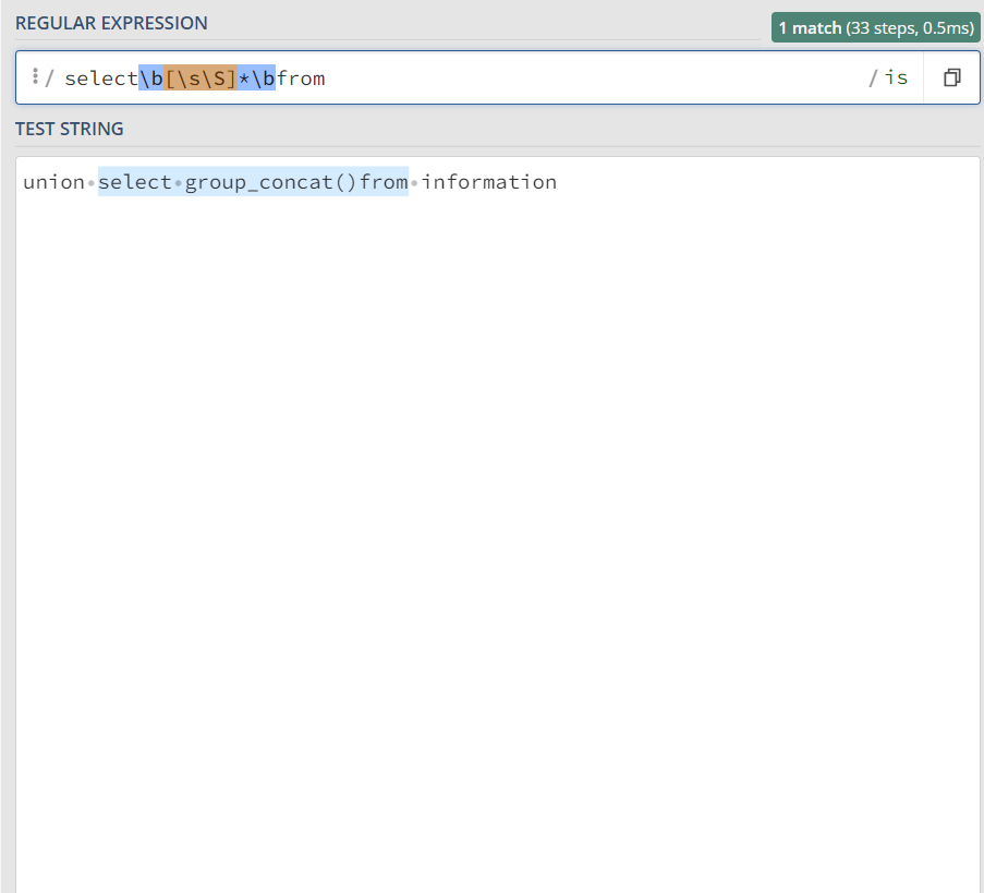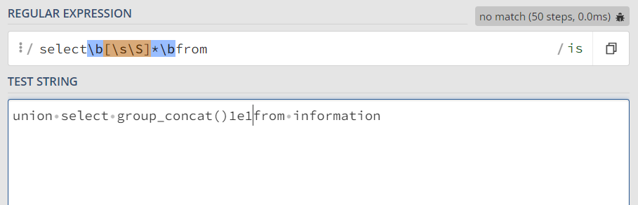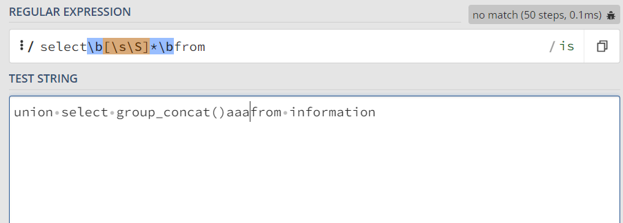 但sql注入要查询数据必须要有select与from,想要绕过正则表达式就要select后或form前有字符