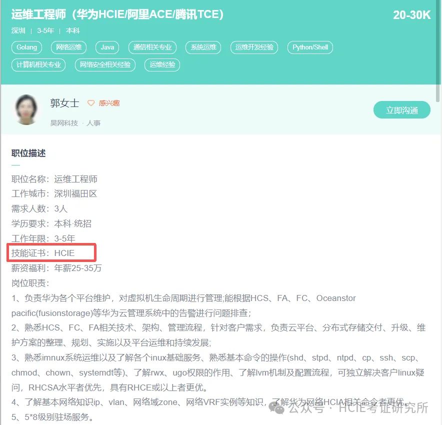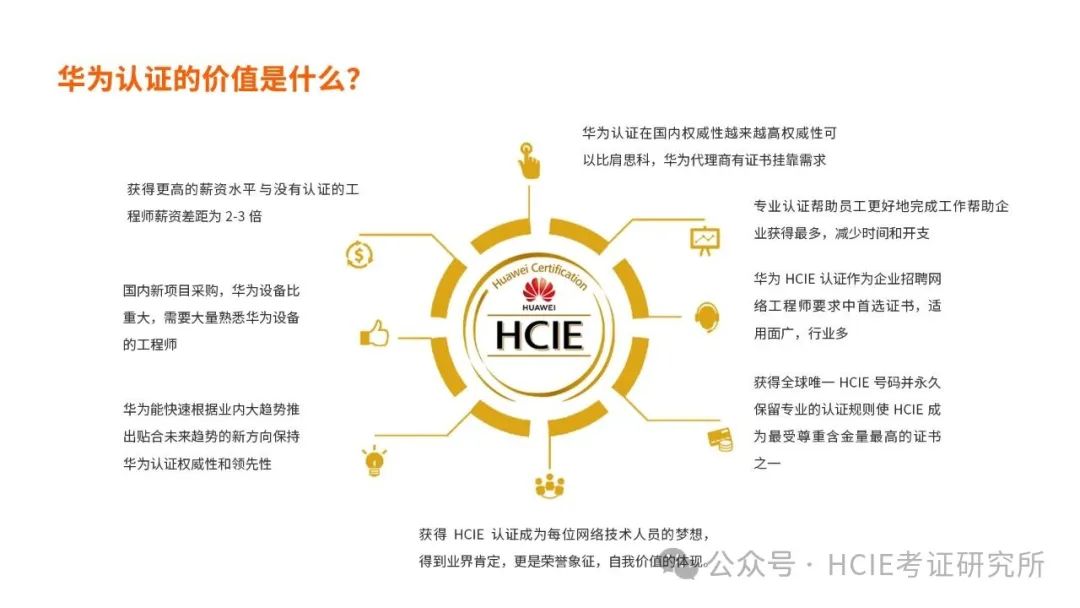 定位与价值:HCIE是华为认证体系中的最高级别,代表着ICT领域的技术巅峰,含金量和认可度也是懂得都懂。