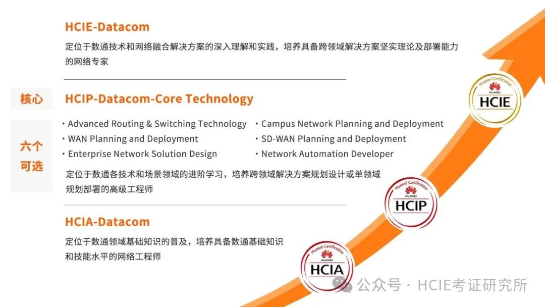 考试与内容HCIP认证采用"1+X"考试模式,即一门必考核心技术科目加上多门可选方向科目。以HCIP-Datacom为例: