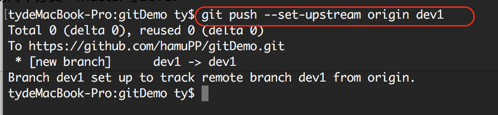 例如,我要把上一步创建的本地dev1推送到远程仓库:
