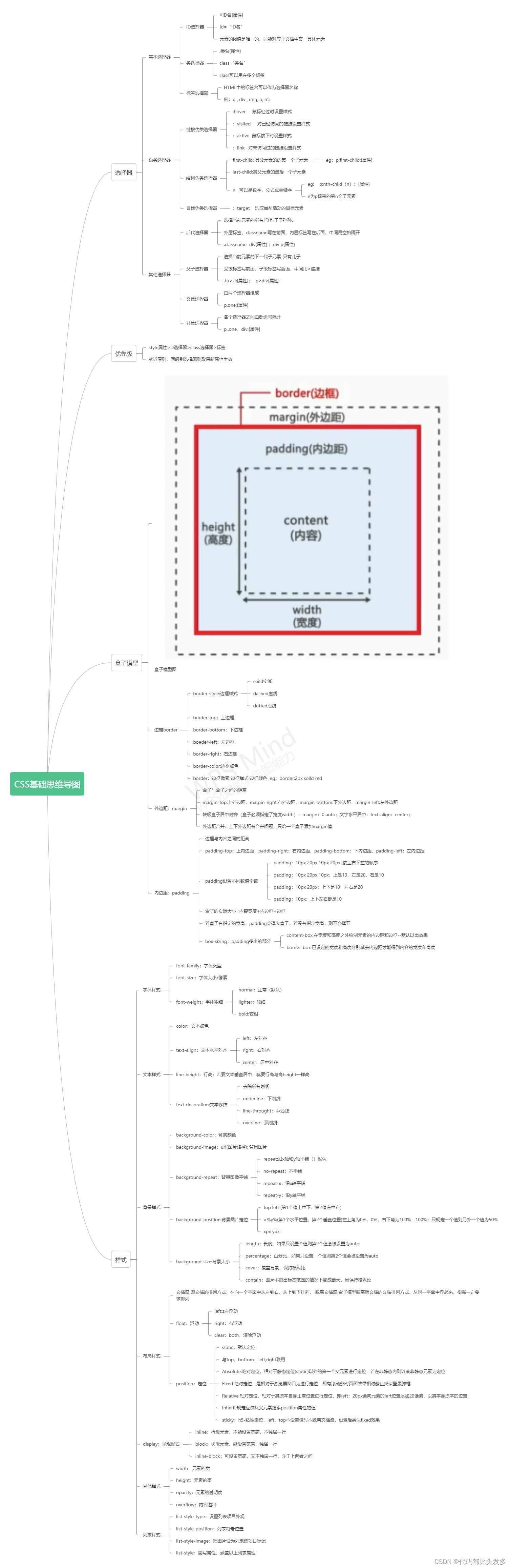 这篇博客主要介绍了HTML和CSS的基础知识,通过思维导图的形式帮助读者理解和记忆。内容包括HTML的超文本标记语言特性、文档结构、常用标签和属性,以及CSS的样式表概念、应用方式和常见样式属性。适合前端初学者复习和巩固。