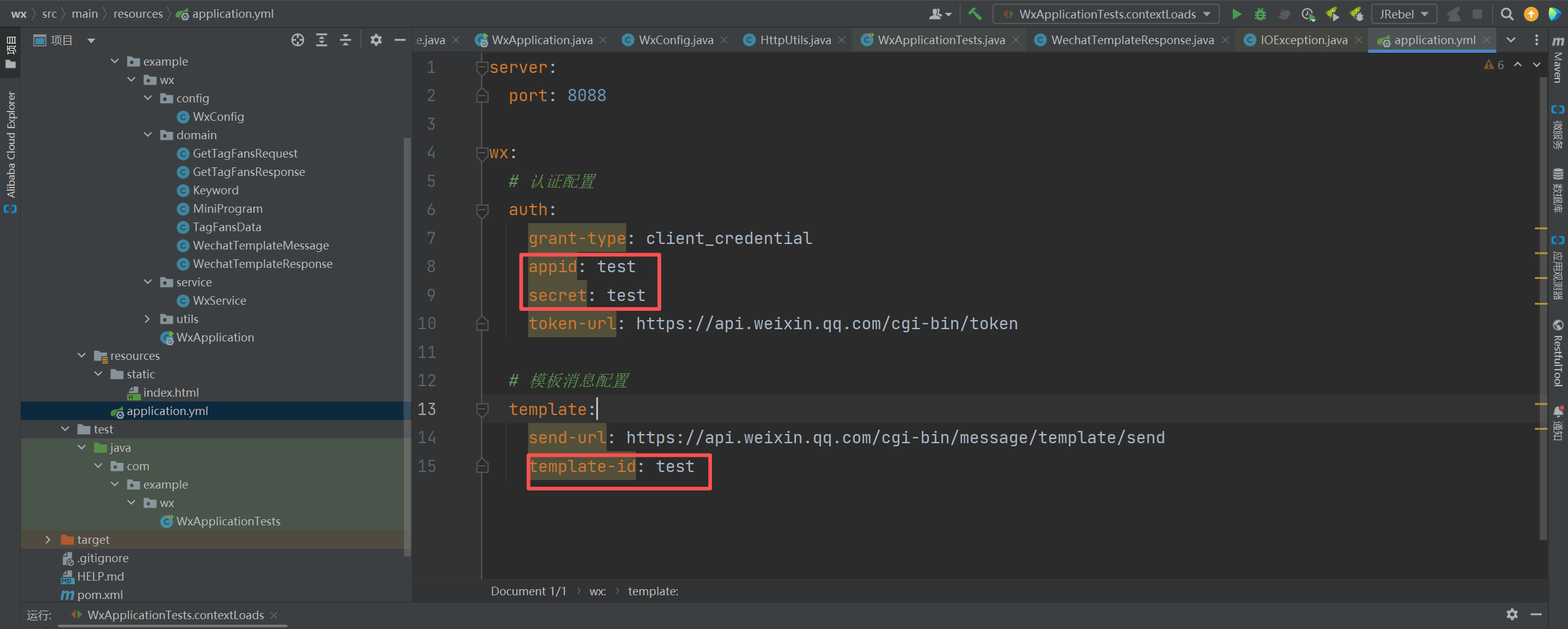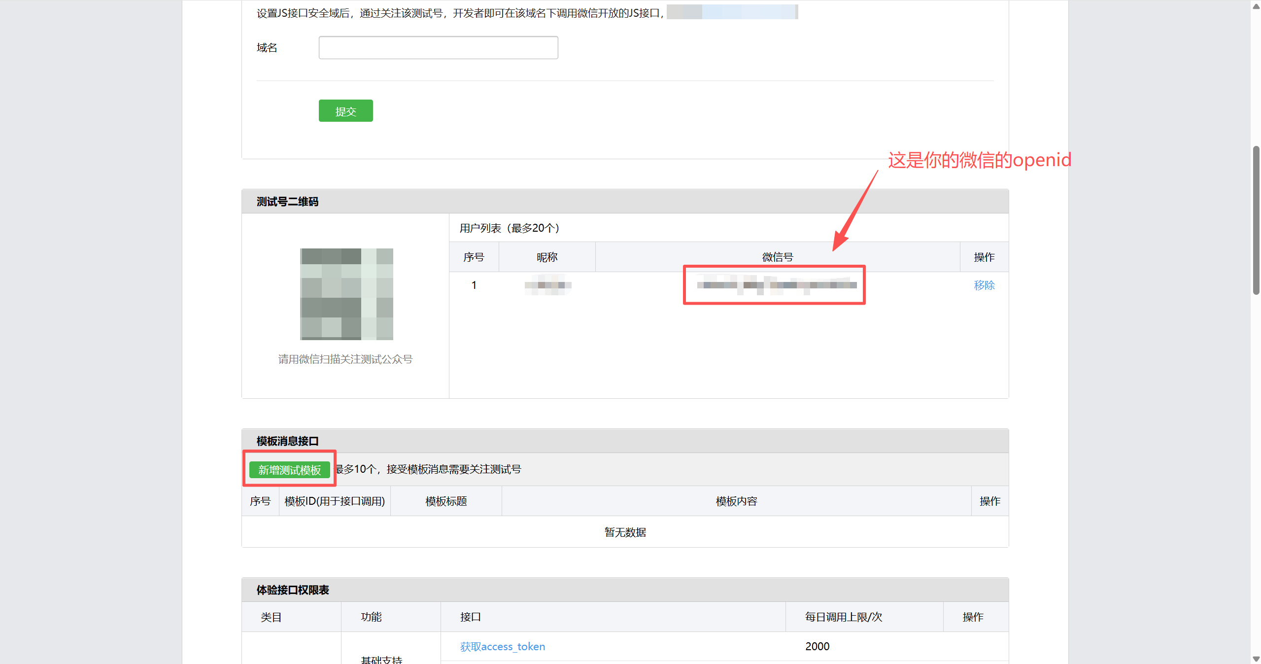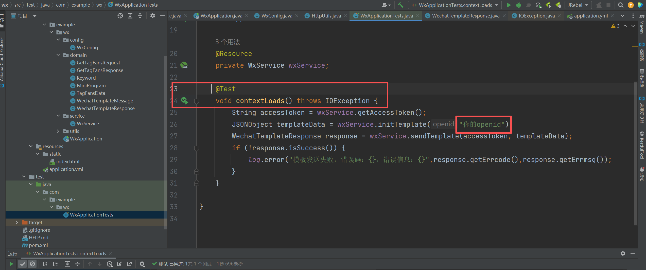 在单元测试把你的openid填入,最后运行即可。