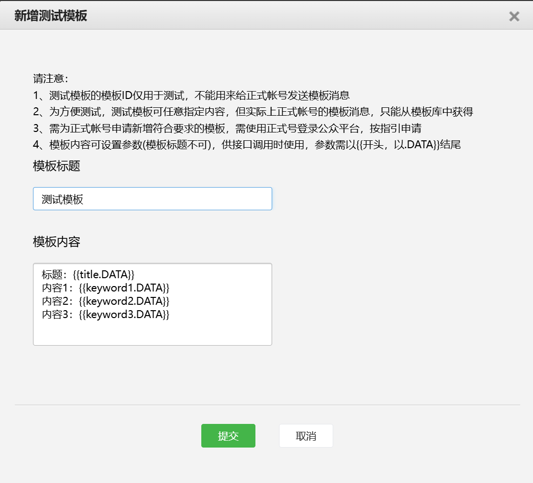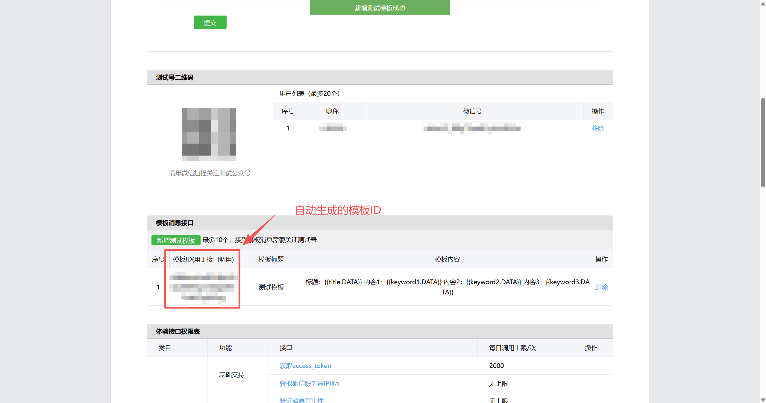 提交后会自动生成一个模板ID