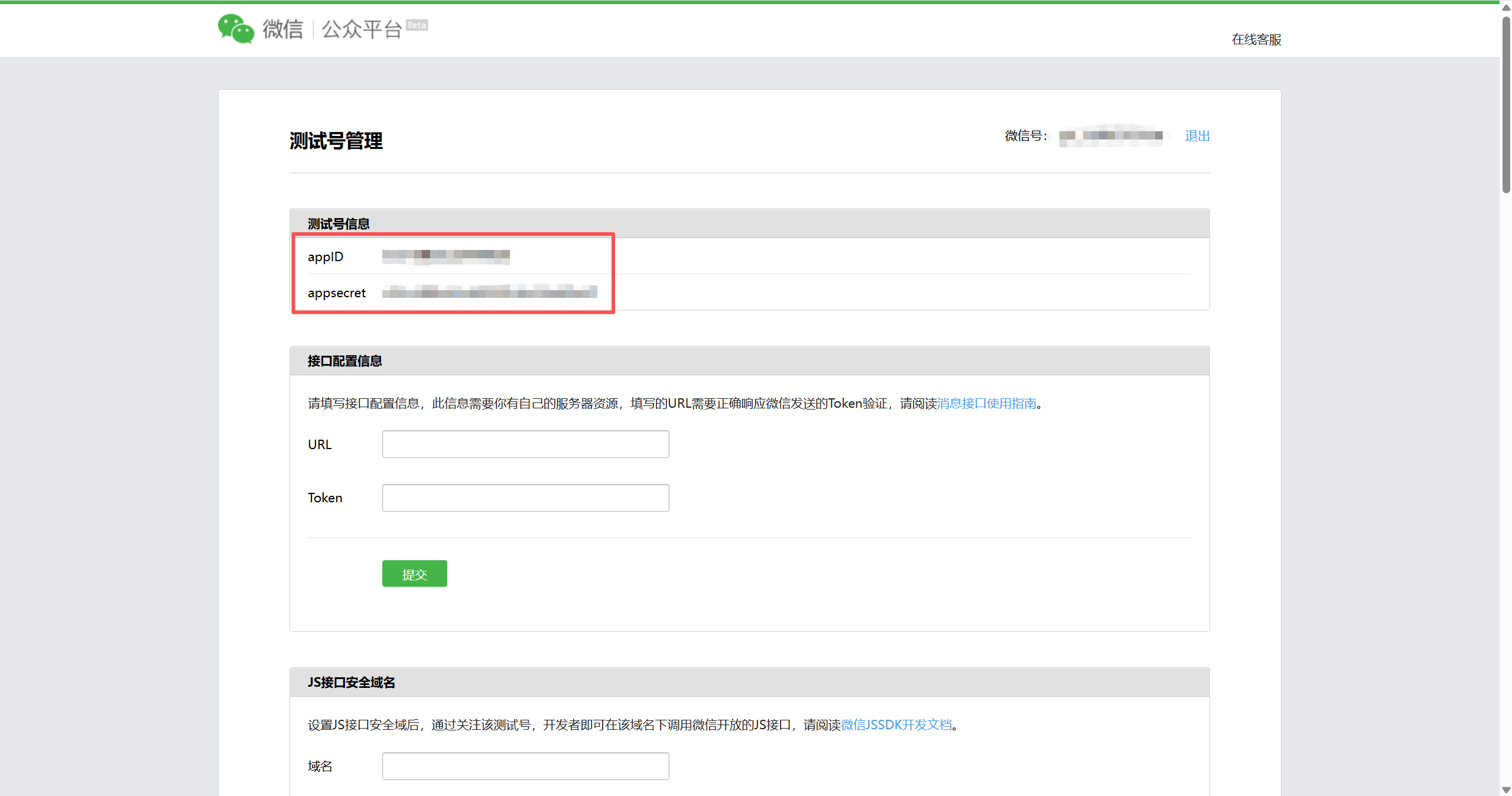 使用微信扫码登录成功以后,先记录您的appID和appsecret信息,后面申请token需要