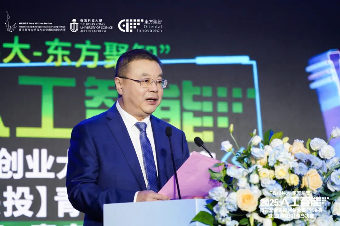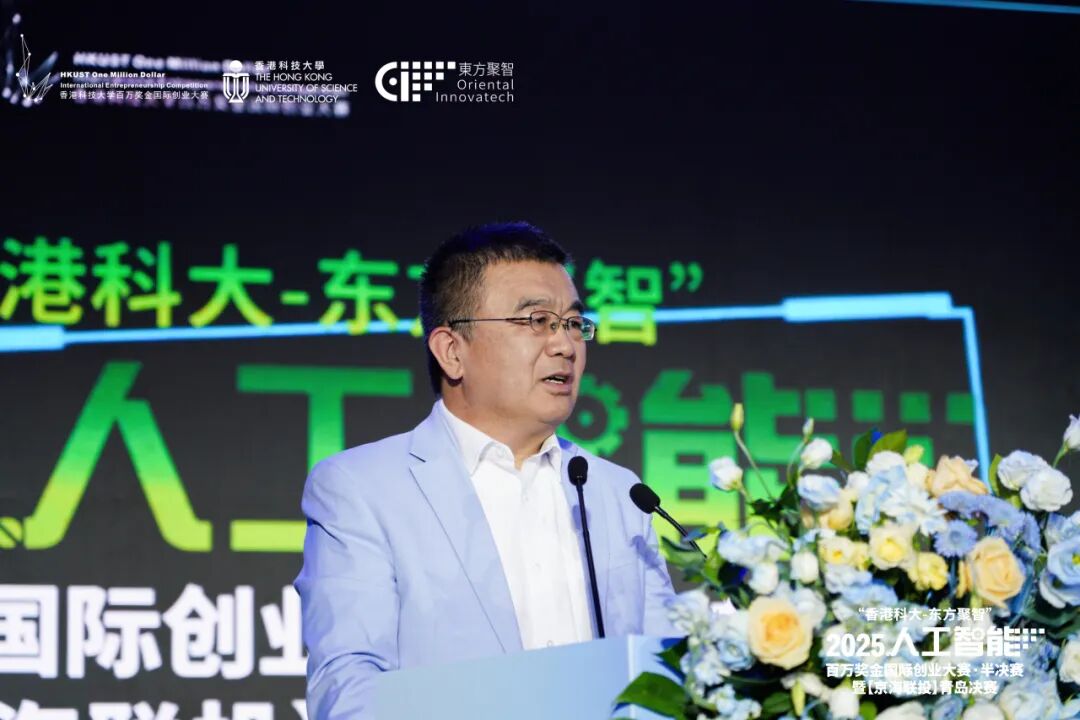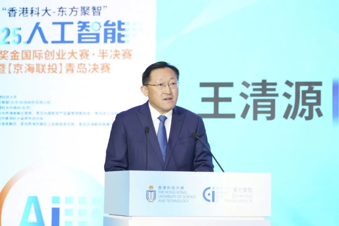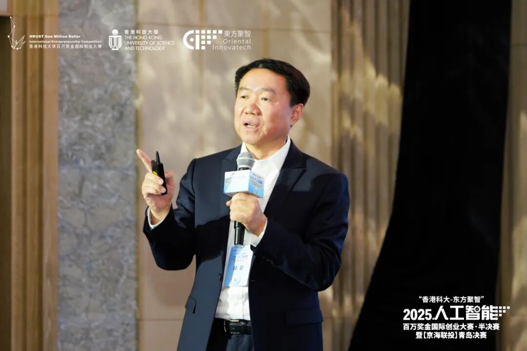 香港科大(广州)协理副校长甄勇教授在致辞中表示,当看到[港科百创]这一品牌来到青岛,看到 178 个 AI 项目中突围的 30 强齐聚于此,由衷感受到香港科大“创新创业创未来”的基因正在跨越山海、落地生根。