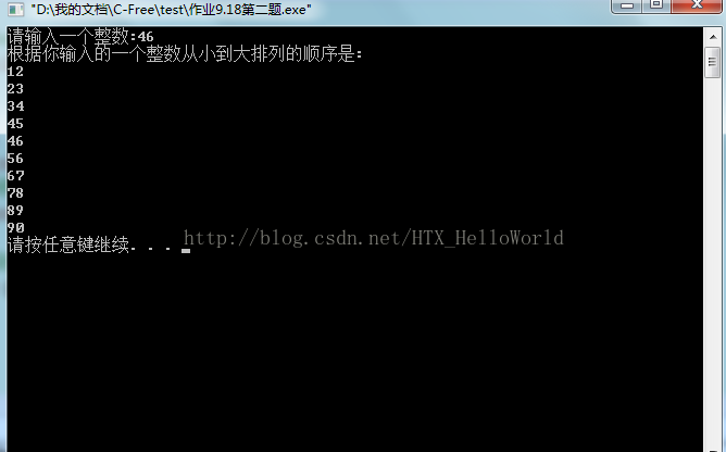 printf("根据你输入的一个整数从小到大排列的顺序是:\n");