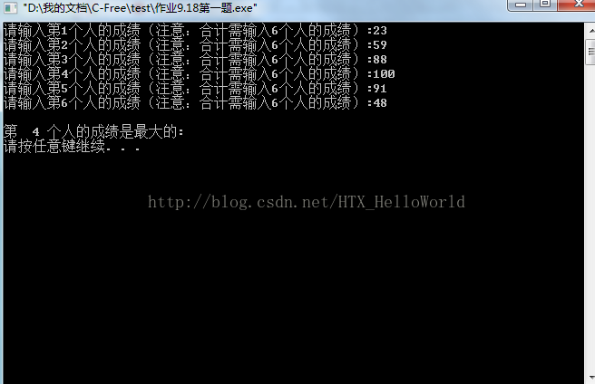 printf("请输入第%d个人的成绩(注意:合计需输入6个人的成绩):",i+1);