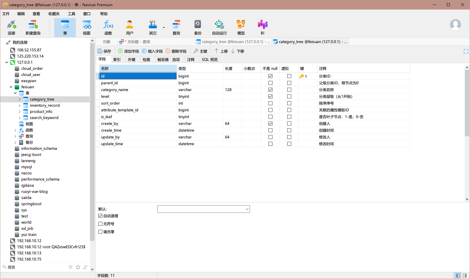 id BIGINT PRIMARY KEY AUTO_INCREMENT COMMENT '分类ID',