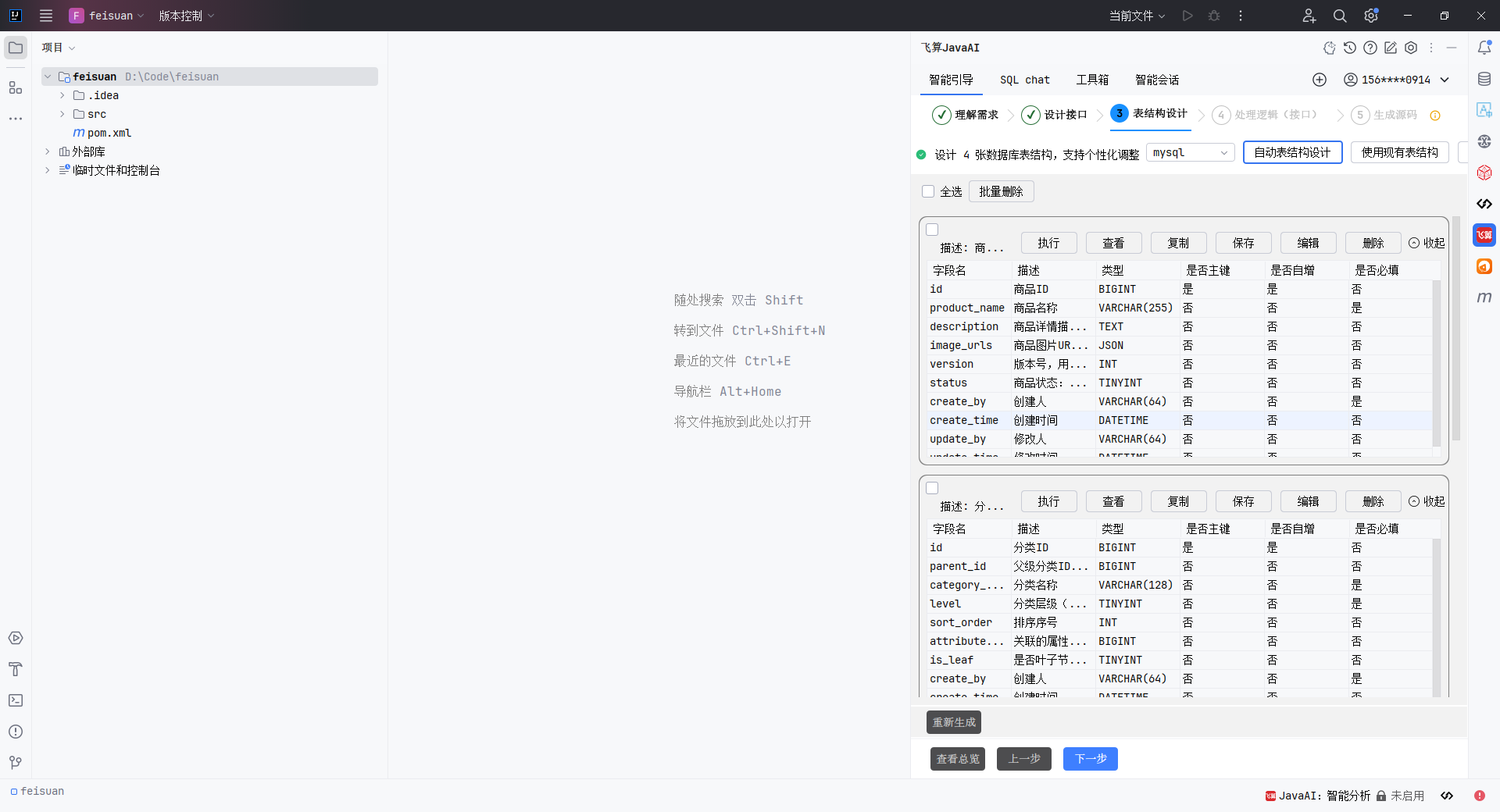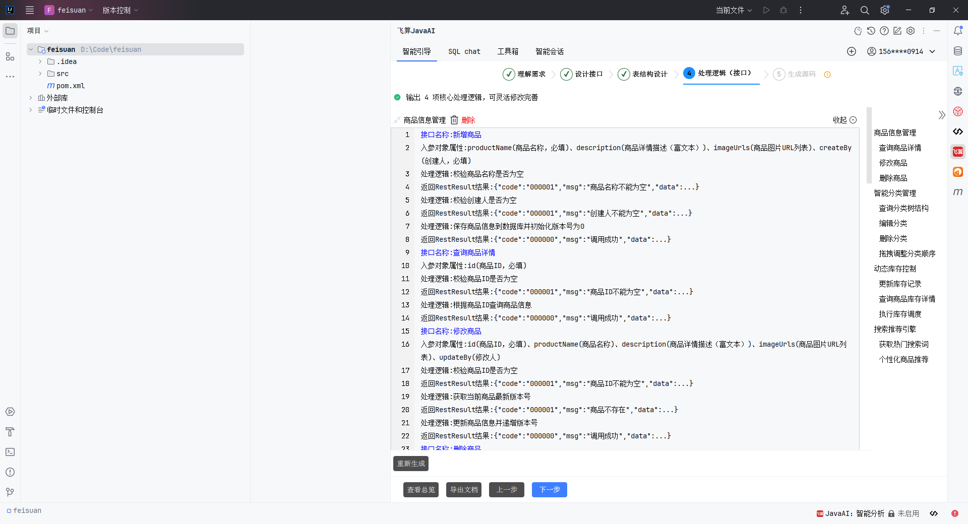 AI辅助开发带来的效率提升令人惊喜。飞算JavaAI能够准确理解业务需求,生成的代码结构规范,连Swagger接口文档都自动生成完整。但作为资深开发者,我认为AI生成的代码仍需人工优化,特别是在异常处理、日志记录等关键环节需要加入业务理解。