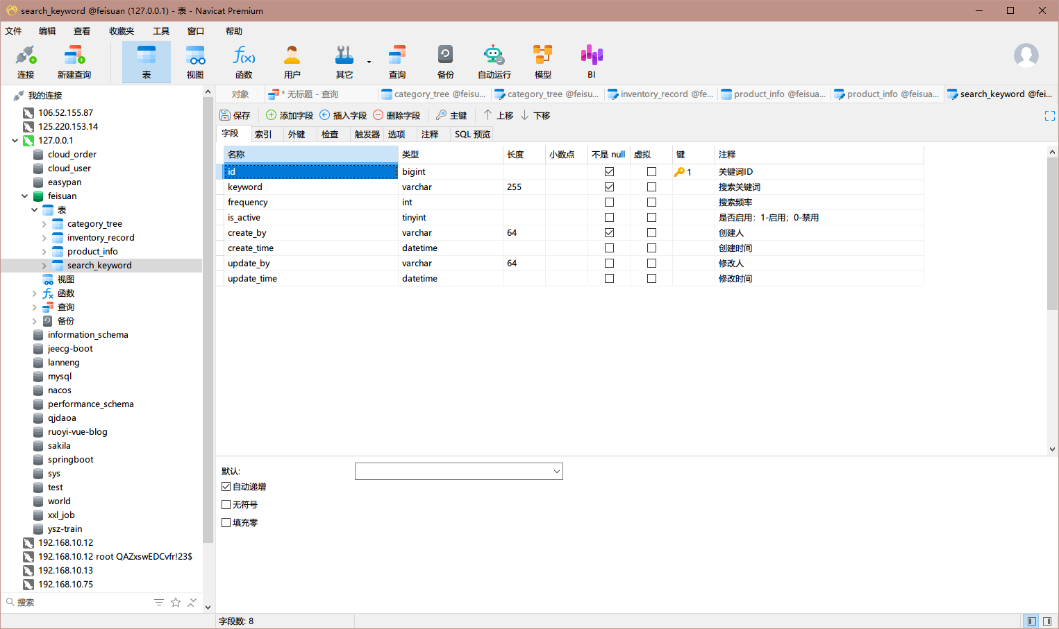id BIGINT PRIMARY KEY AUTO_INCREMENT COMMENT '关键词ID',