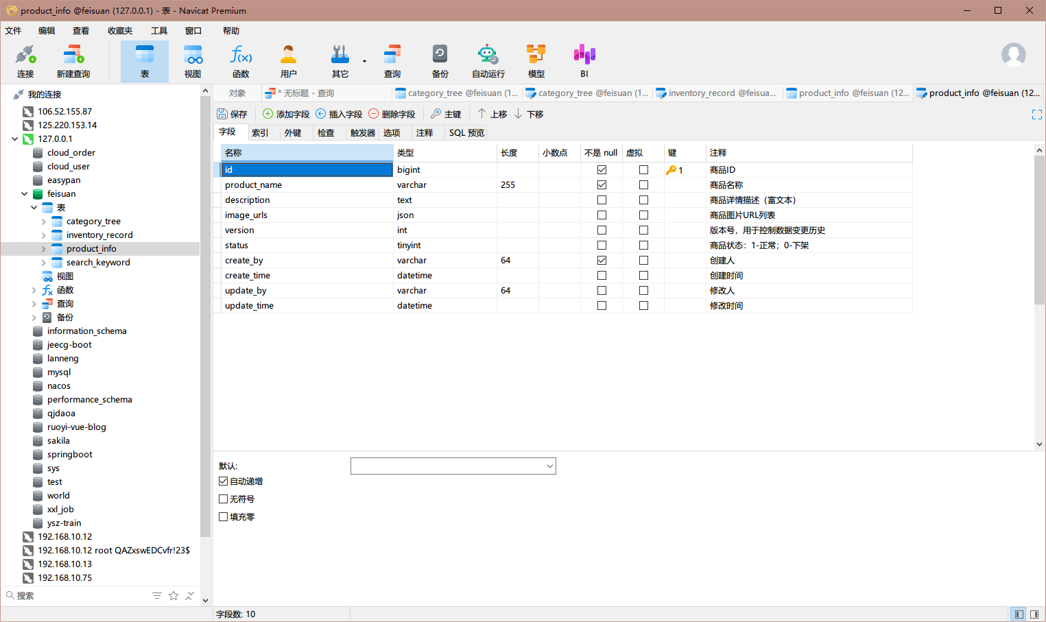 请使用飞算JavaAI插件辅助开发一个完整的电商系统商品管理模块。项目采用Spring Boot 2.7+微服务架构,前端使用Vue.js 3.0,数据库使用MySQL 8.0主存储+Redis缓存+Elasticsearch搜索引擎。