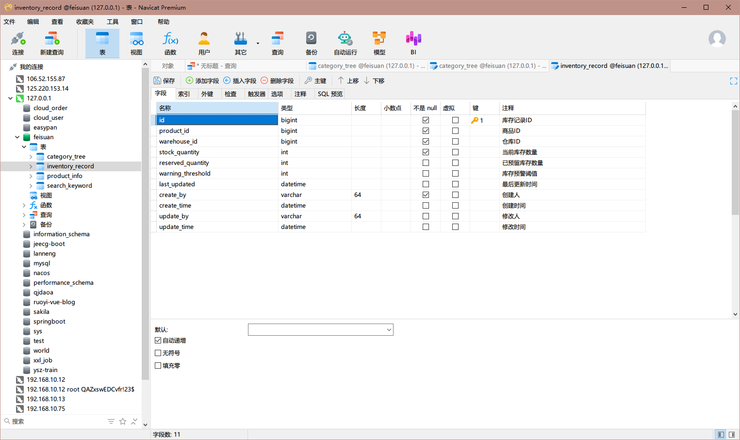 id BIGINT PRIMARY KEY AUTO_INCREMENT COMMENT '库存记录ID',