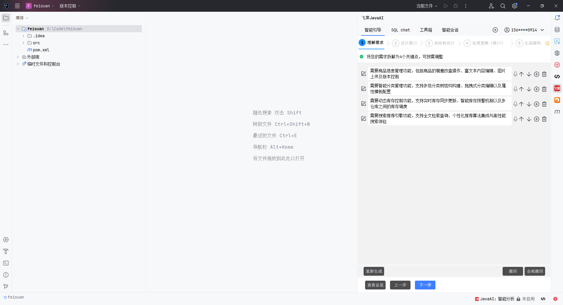 需求分析完毕之后,准备好飞算JavaAI的AI Coding开发提示词,本次要做的项目开发提示词:
