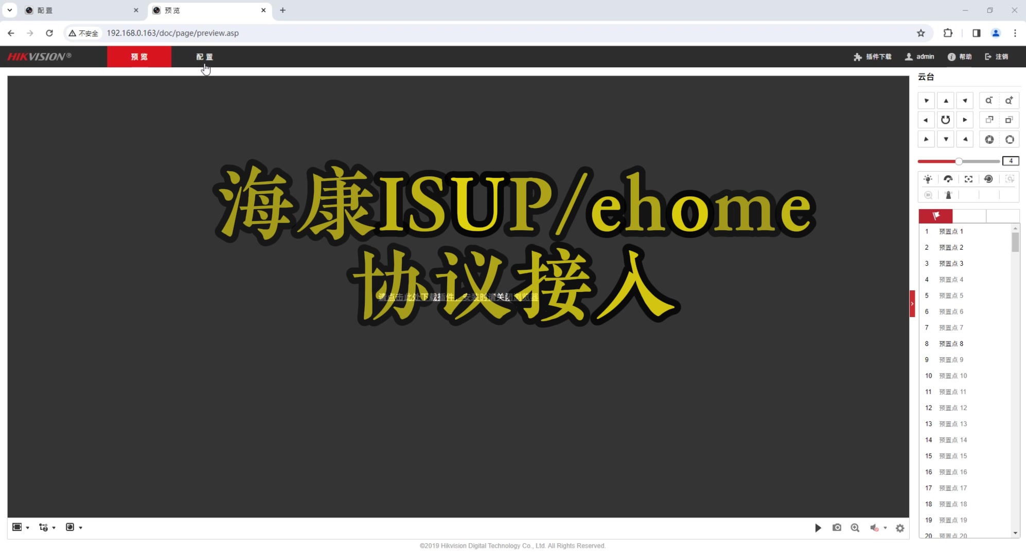 海康ISUP/ehome协议接入SVMSPro平台 SVMSPro平台支持海康ISUP/ehome协议接入,同时支持标准视频流输出(RTSP\FLV\Websocket\HLS),网页嵌套等中间件应用,支持定制化开发