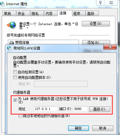 测试用的浏览器也设置成同样的代理(可以用proxy switcher等快捷代理设置插件,也可以自己手动设置,例如如下)