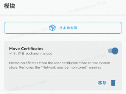 Move Certificates模块可以直接在Magisk框架里安装,也可以去github上面下载再本地安装。安装后启动模块
