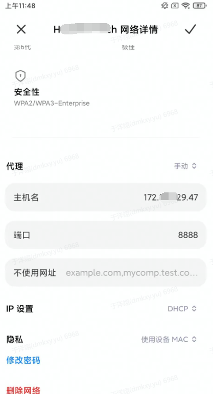 移动端这边可以直接在wifi设置里添加手动代理,如果觉得麻烦也可以使用Drony一类的代理软件。
