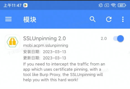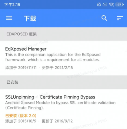 SSLUnpinning模块可以直接在EdXposed Manager里下载,如果下载不了,可能需要挂一下VPN,也可以去github下载自行安装。