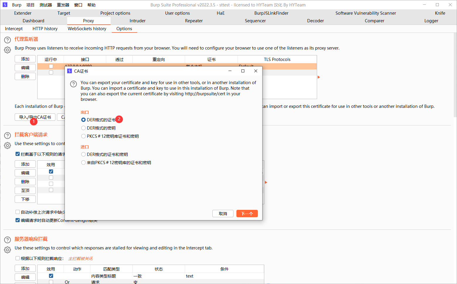 拿到手机,首先和web端抓包一样,需要导入自己的burp证书。从这里导出证书,修改为cer格式,上传安装到手机里。手机通常在设置->系统安全->加密与凭证,可以从存储设备安装。
