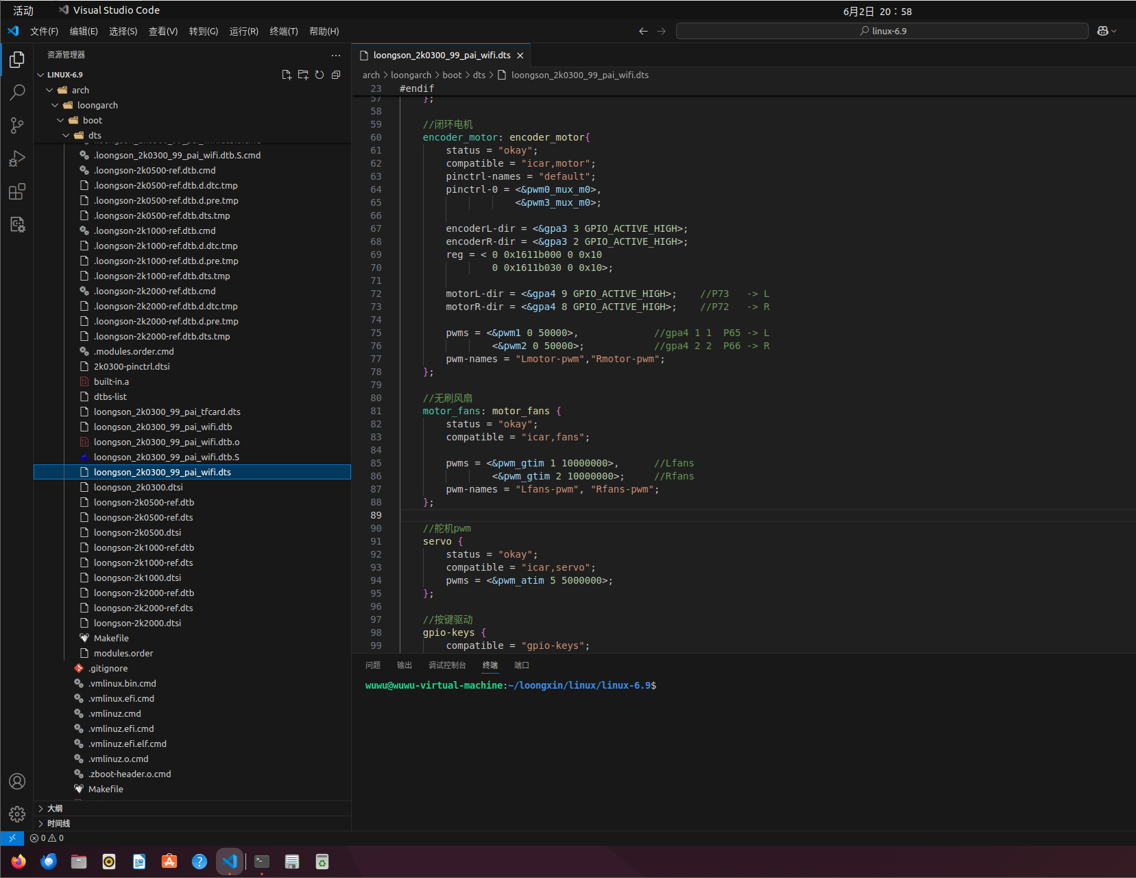 位置位于:linux-6.9-WuwuSama-99pi/arch/loongarch/boot/dts/loongson_2k0300_99_pai_wifi.dts
