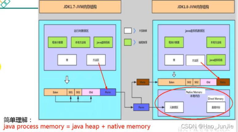 二、JDK 1.7 和 JDK1.8内存结构的比较: