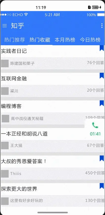场景三:可响应正常点击事件,可通过触发拖动使悬浮窗的移动,根据最后手势停留位置,做动画靠屏幕左或靠右显示,跳转和返回上级页面后悬浮窗依然存在,且相对手机屏幕位置不变。
