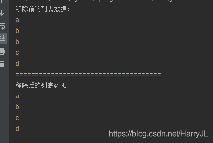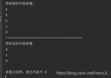 System.out.println("移除后的列表数据");