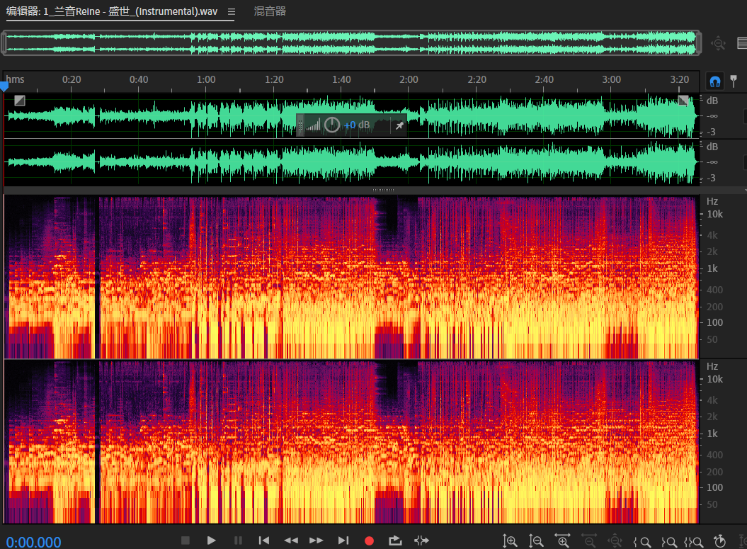 比如扒谱示范的这首歌的提取伴奏是这个样子:
