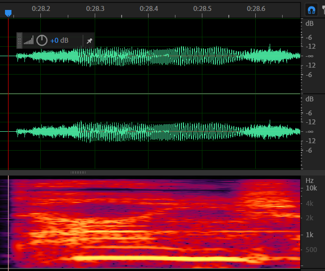 Cubase虽然也可以通过自带的analysis插件呈现语谱图,但并不方便,其他的音频处理软件比如Adobe的AU(上面这张图就是放到AU里截取的),你可以同时观察波形和语谱图(也有人叫频谱图),这样就更加直观。