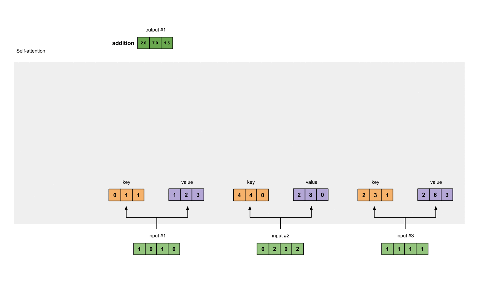 本例中我们选择三个输入值,已经通过embedding处理,得到了三个词向量。