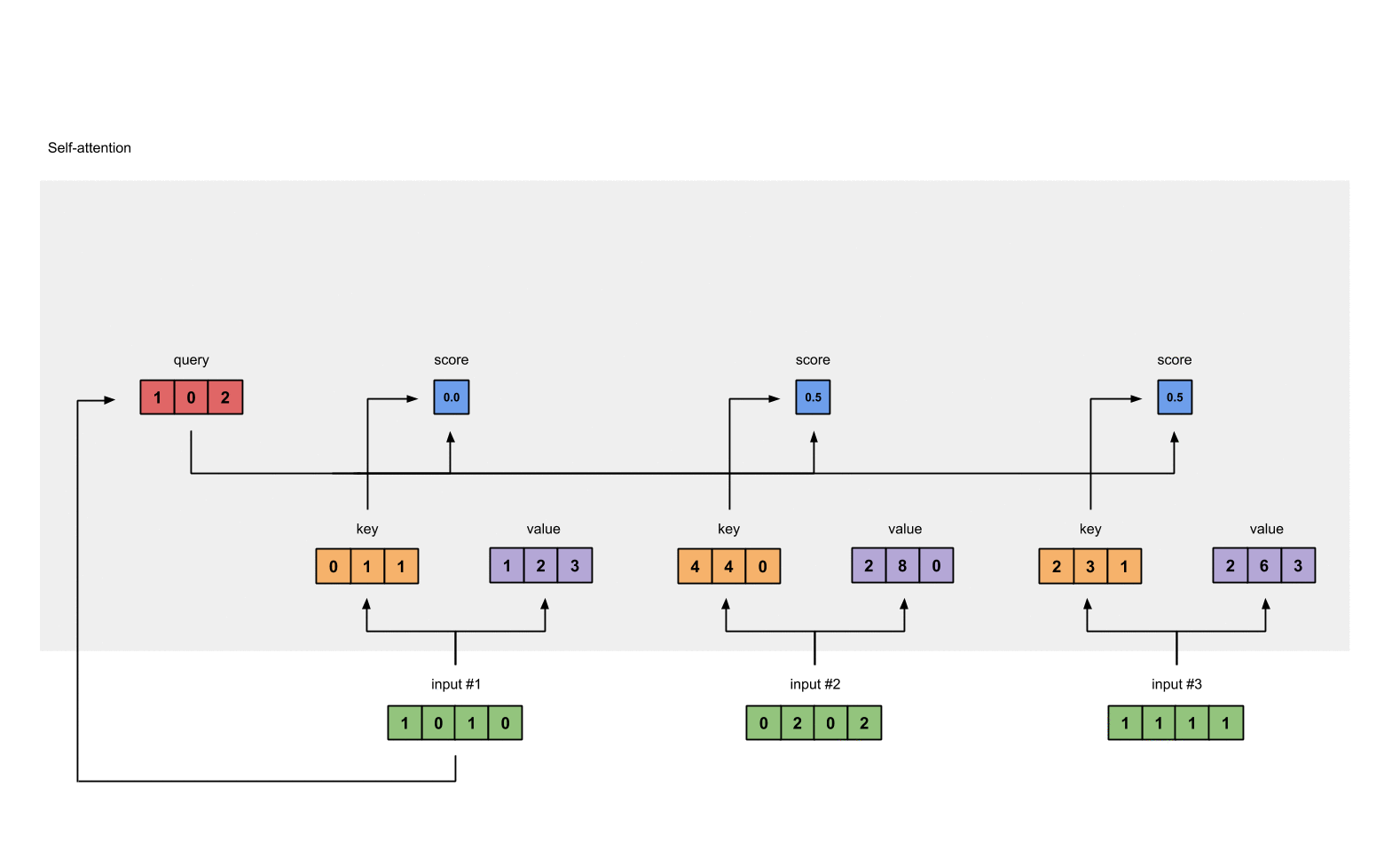 - 计算输入值的注意力得分