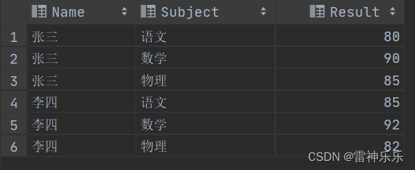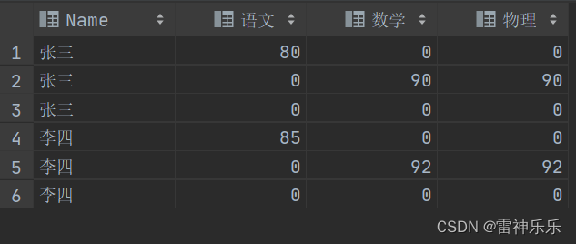 CASE WHEN Subject='语文' THEN Result ELSE 0 END AS 语文,