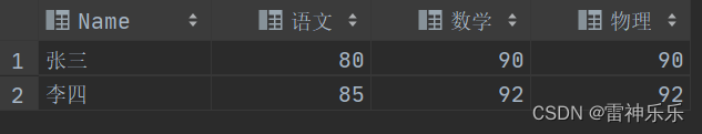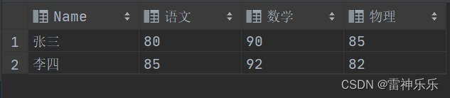insert into cj2 values ('张三',80,90,90),('李四',85,92,92);