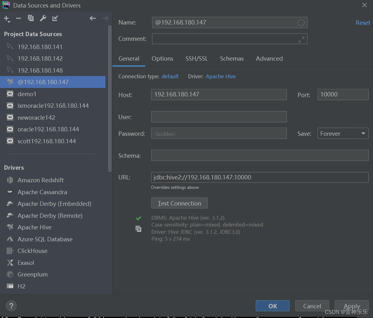 Connecting to jdbc:hive2://192.168.180.147:10000