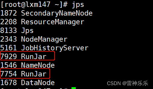 一个RunJar是hiveserver2,一个RunJar是beeline