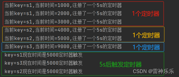 System.out.println("当前key=" + currentKey + ",当前时间=" + currentTs + ",注册了一个5s后的定时器");