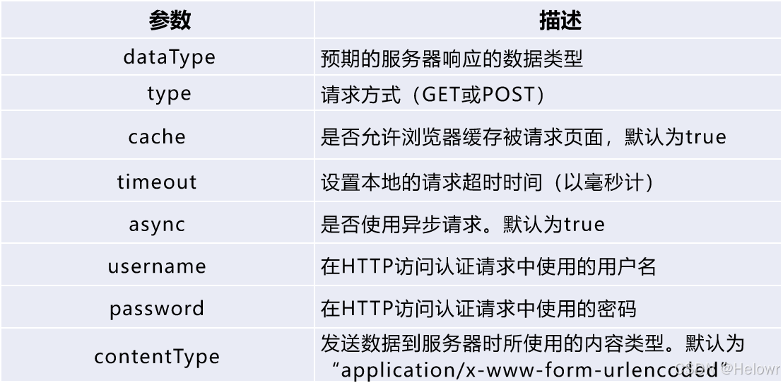 $.ajax()方法是jQuery中最底层的Ajax方法,$.ajax()方法可以实现所有关于Ajax的操作,其语法格式如下。