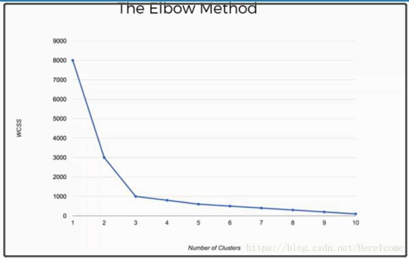 图中显示:k-Means中选择3个cluster时,WCSS距离值改变的趋势基本不明显,于是选择K=3