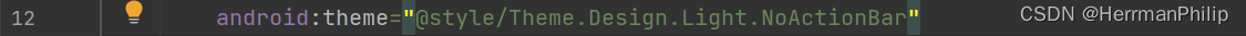 3.在做完UI设计调整后,一定要修改主题,否证对象的样式不会改变。在manifests-AndroidManifests.xml中android:theme = "@Style/Theme.+++++"中把“+++++”部分换成“Design .Light.NoActionBar”。之后,在需要的xml界面中,把对象(例如Button)的相应函数改为 android:background = “@drawable/____” ("____"部分是刚刚定义的shape页面名)。