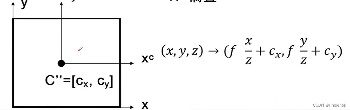 所以有(x,y,z)->(f * x/z + Cx,f * f * y/z + C)